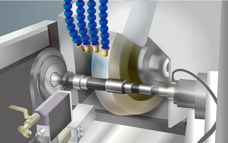 While producing automobile parts outside Japan has become the mainstream, supply of power to run machines overseas is still unstable compared to Japan. Countermeasures such as uninterruptible power systems (UPS) have been in use to cope with the problem. Even so, if a machine such as a grinding machine stops suddenly, the rotational energy of the grindstone remains due to the stone's weight. This could damage the motor or other mechanical parts. Because of these issues, manufacturers of machine tools, especially of grinding machines, have provided measures to cope with momentary stops to their machines, and the measures need to be effective.