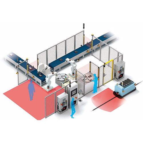 To prevent accidents at production lines, chemical plants, and on factory machines, safety components that reduce risk and various equipment to send and receive information between humans and machines are used.