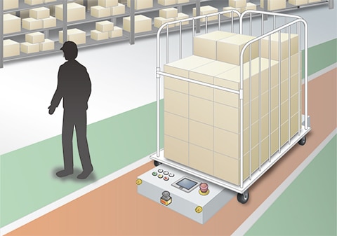 荷物の搬送などを無人搬送車(AGV)が行い、その他の作業を人が担うなど、人とロボットが協働する工場が増えてきています。 AGVを導入する際、物流現場によっては一本の通路を人の歩行用とAGV走行用に区切ることで安全性を確保している場合があります。