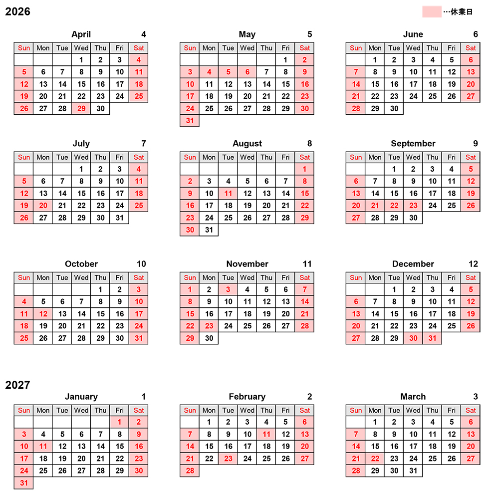営業日のお知らせ
