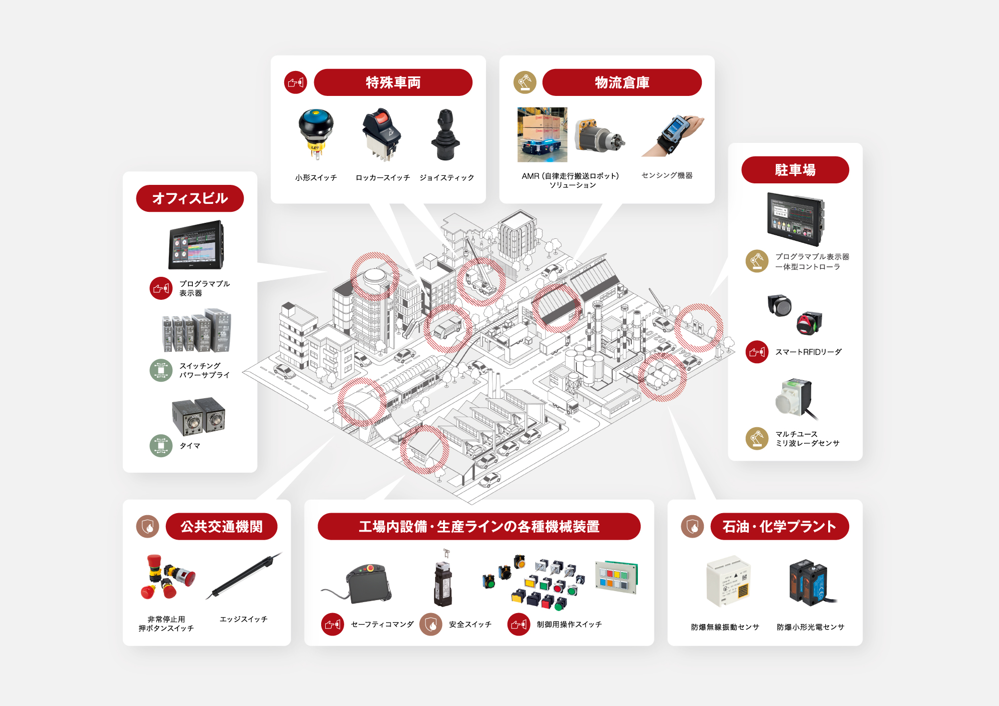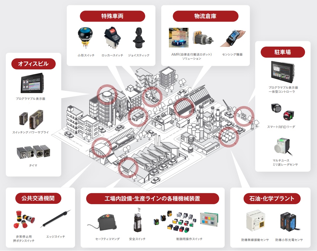 IDECグループの技術や製品は、工場をはじめとするものづくりの現場や、暮らしの身近なシーンにおける、さまざまな社会課題の解決に貢献し、ものづくりとくらしの未来を支えています。
