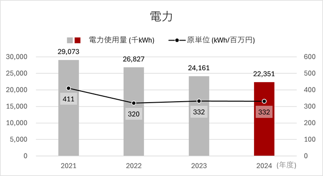 | 電力使用量(千 kWh) | 連結 | 26,827 | 24,161 | 22,351 |
